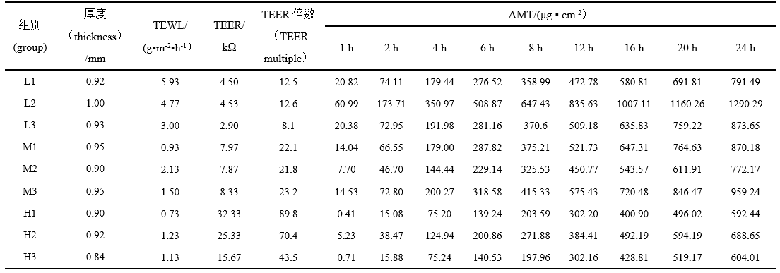 表1 皮肤厚度、TEWL、TEER、AMT 的测定结果
