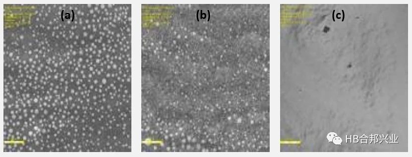 图1所示.显微镜图像:(a) EMLA®乳膏和(b)仿制药利多卡因和丙胺卡因乳膏显示球状,(c) Oraqix®凝胶中均匀无球状基质。图a和图b的比例尺为20µm,图c的比例尺为100µm。