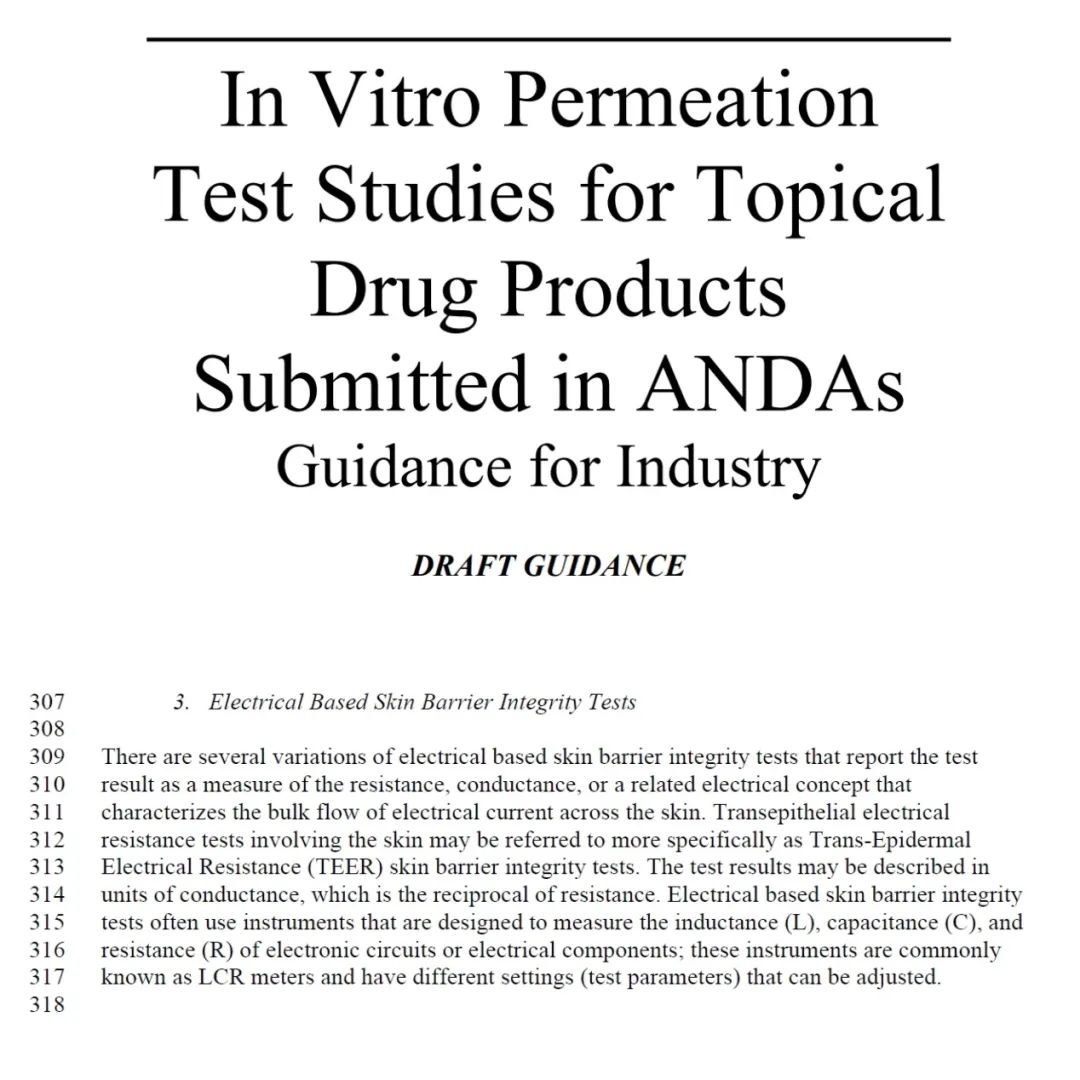 相关法规: In Vitro Permeation Test Studies for Topical Drug Products Submitted in ANDAs.pdf