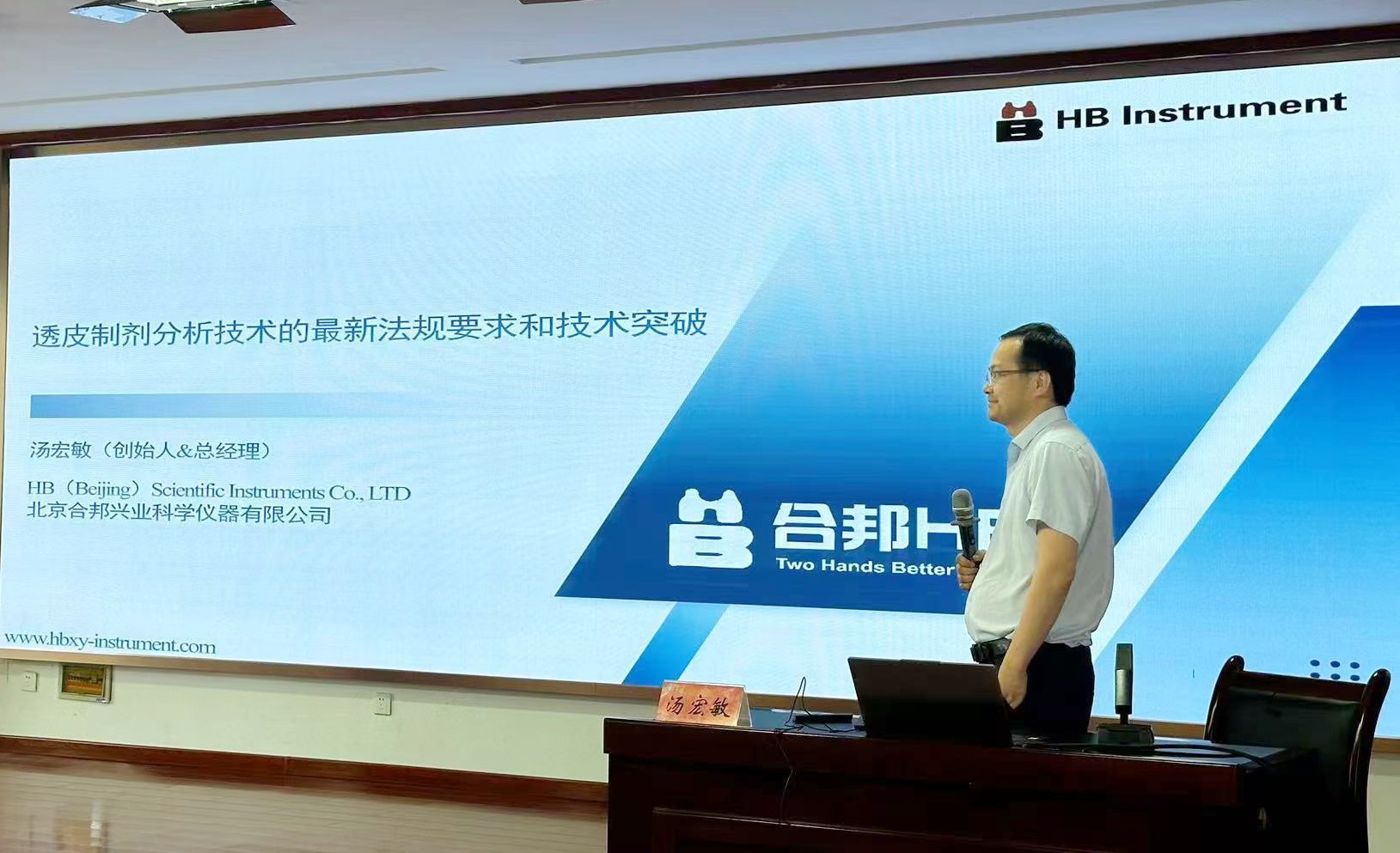 合邦科仪受邀参加此次活动,创始人&总经理汤宏敏带来主题报告《透皮制剂分析技术的最新法规要求和技术突破》。