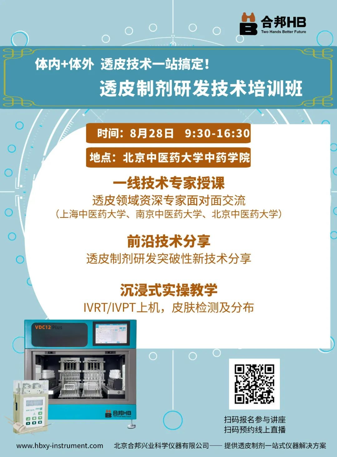 试行指导原则6月份发布(试行指南发布!《局部起效化学仿制药体外释放(IVRT)与体外透皮(IVPT)研究技术指导原则(试行)》),法规要求又有了很多细节上的更新,企业/研究机构在透皮制剂的研制与开发过程中,面临着诸多复杂的技术难题。为助力国内企业/研究机构攻克技术难关,加速透皮制剂项目落地,2025年8月28日,由北京合邦兴业科学仪器有限公司承办的“透皮制剂研发技术培训班”将在北京中医药大学举办。